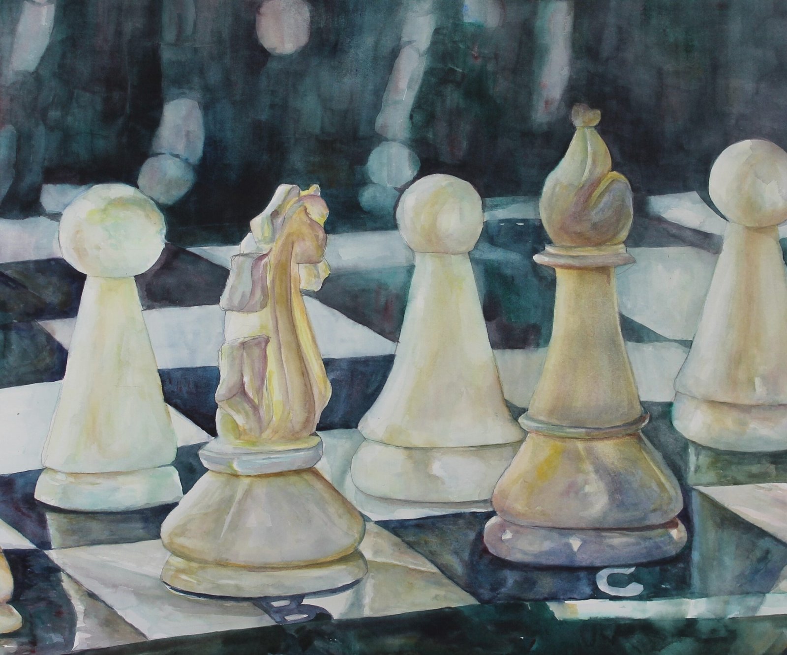 White…. pure, bright, snowy. These are a few words most would use to describe white. Avoidance, nemesis, fearful, challenging…are words that I was using when white objects were in a composition to be painted. A challenge! Uncomfortable! I have usually found that when something is difficult or challenging, I will find it extremely rewarding when I have worked to master it, or in this case, to become comfortable with white. So, I set out on a mission to paint white objects. It was amazing how often they started coming my way; a photo of a wedding dress in a friend’s wedding album, white chess pieces on a friend’s chess set, a classic flower discovered on a walk in the neighborhood park, the feather floating at the end of a movie, and even an ancient relic of a person captured in time from a volcanic explosion. In this quest, I learned that white cannot be described as “without color”! Through my close observations, white was blue, and green, and pink, and all the other colors of the color wheel. So, I give you the outcome of my quest. Not necessarily mastered, and still challenging, but now at least comfortable. Join me in my journey in finding The Colors of White!