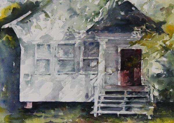 Cissy McCabe Quinn was born and raised on the Mississippi Gulf Coast. She spent her childhood swimming in the bayous, playing on the sand bars, and fishing in the waters. These childhood experiences have had special influences on her artistic inspirations. These are the subjects to which she continues to return. Watercolor has been her media of choice since working with Charles Ambrose at Mississippi University for Women, where she received her BFA, and then studying with him again at William Carey College on the coast. As an art teacher, she worked and created with all material and media, but watercolor is where she always returns. The ability to layer one color over another, over and over, creating layers of depth, and continue to see the beginning color and brush stroke is inspiring. It allows you to look deeply into the painting, past the surface; it draws you into the scene you are painting. Nature has always been her inspiration and teacher. It also draws her in to see past the surface, to see the layers of creation. A decaying fishing cottage on the banks of the bayou, with rich neutral colors of the weathered wood that contrast with the warm inviting red of the rusty roof; the embrace of lush, overgrown foliage; the aging majestic shrimp boat with peeling paint and rusty rigging reaching up to the heavens; birds flying over the waters like angels flying low with grace and joy. These scenes are her inspiration and in painting them she hopes to share the experience with the viewer and to preserve our heritage of beautiful, natural resources.